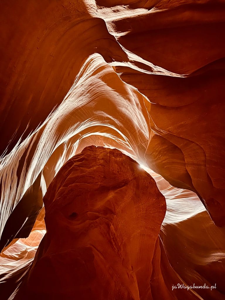 Wąskie korytarze i szczeliny wyrzeźbione przez wodę w czerwonej skale piaskowca, tworzą naturalne korytarze o bajecznych kształtach. Gdy słońce wpada przez wąskie szczeliny nad głową, wnętrze kanionu zamienia się w magiczną grę światła i cienia – ściany mienią się odcieniami czerwieni, pomarańczu i fioletu.