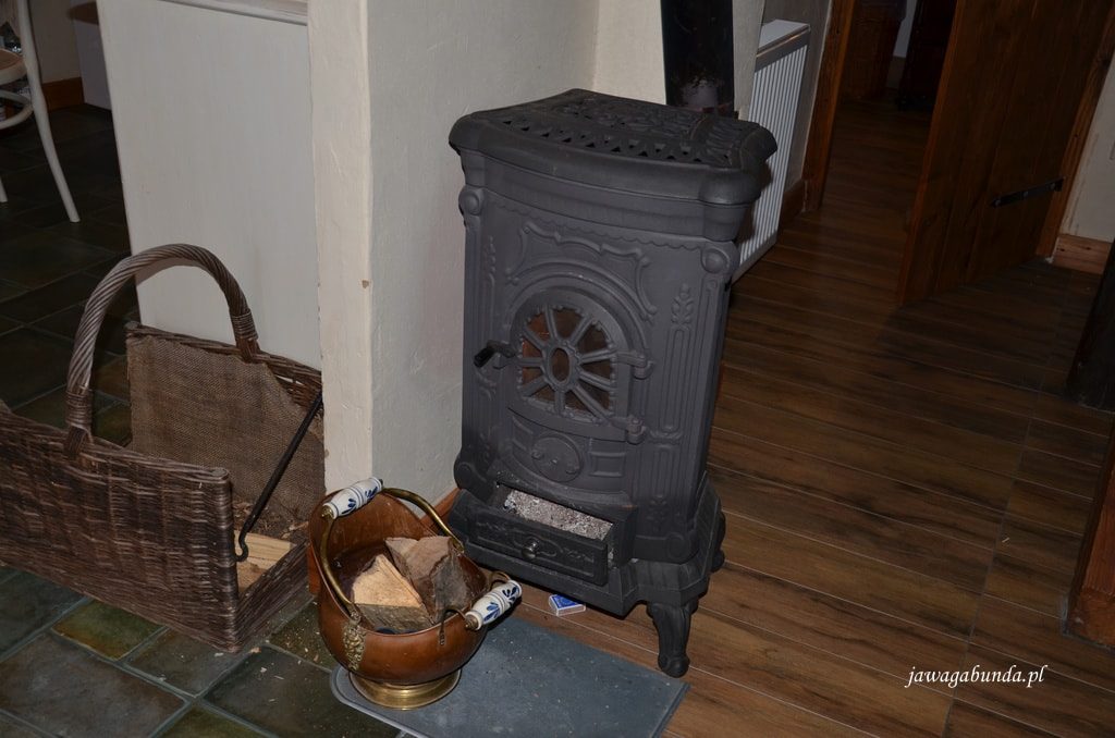 Cudowne, stare meble pięknie odnowione i piec – koza dający ciepło. Ciepło pomieszczeniu i duszy.